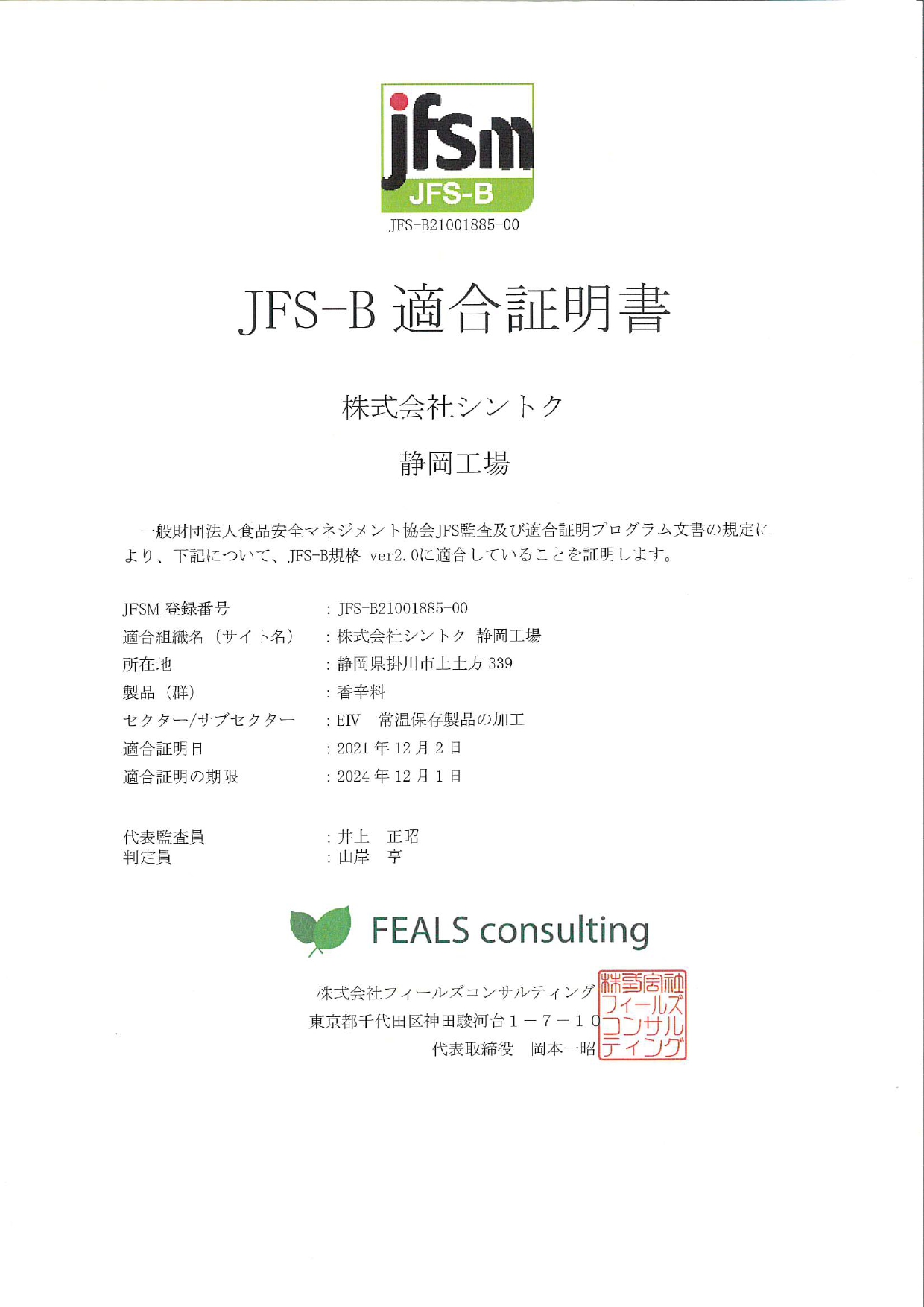 静岡工場では2021年にJFS-B規格の認定を取得し、常に食品の安全性を一番に考え、製造・出荷しております。